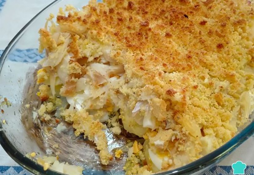 Ponha o bacalhau de molho, de véspera. No dia seguinte afervente, tire as peles e os espinhos. Corte em lascas longas e finas. Bata as claras em neve, junte as gemas e continue a bater. Junte depois uma pitada de sal. Adicione a farinha de trigo, procurando deixar a massa bem lisa. Passe por essa mistura as lascas de bacalhau e frite em óleo quente. À parte, faça um molho com os tomates e todos os temperos. Use azeite doce para refogar os tomates. Tenha cuidado para não colocar muito sal (o bacalhau já é salgado). Coloque numa forma: uma camada de bacalhau já frito, uma camada de molho de tomates, uma camada de ervilhas. Repita a operação até que terminem os ingredientes. Leve ao forno brando durante uns 15 minutos e sirva hem quente.