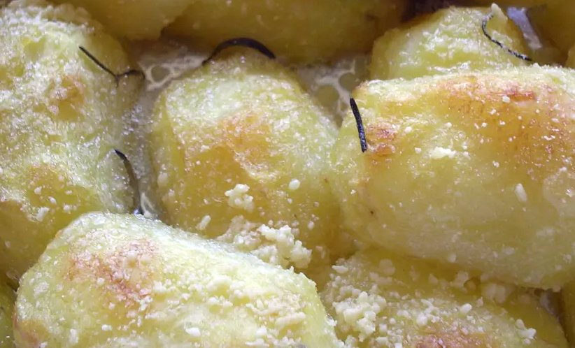Descasque as batatas e pique-as ao meio. Forre uma forma com manteiga. Coloque as batatas cozidas. Despeje por cima os ovos batidos (gema e clara juntos) e misturados ao leite. Adicione a manteiga e polvilhe com farinha de rosca misturada ao queijo parmesão ralado. Se desejar, salpique um pouco de alecrim nas batatas. Leve ao forno quente para derreter o queijo e dourar.